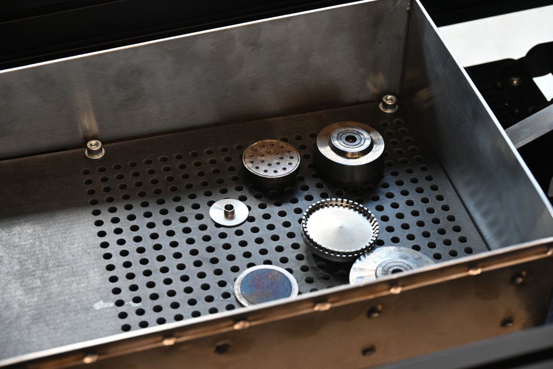 I componenti interni, insieme alla filiera e alla polvere, vengono raccolti nel cassetto inferiore.